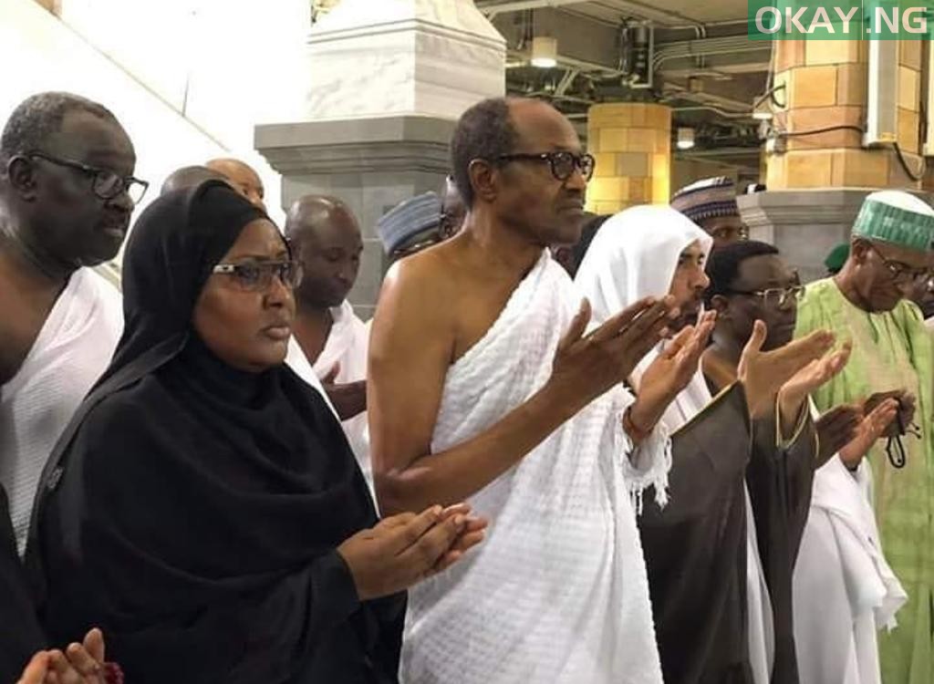President Muhammadu Buhari and wife Aisha perform Umrah (lesser Hajj) at the Masjid Haram (the Grand Mosque) in Makkah, the Kingdom of Saudi...
