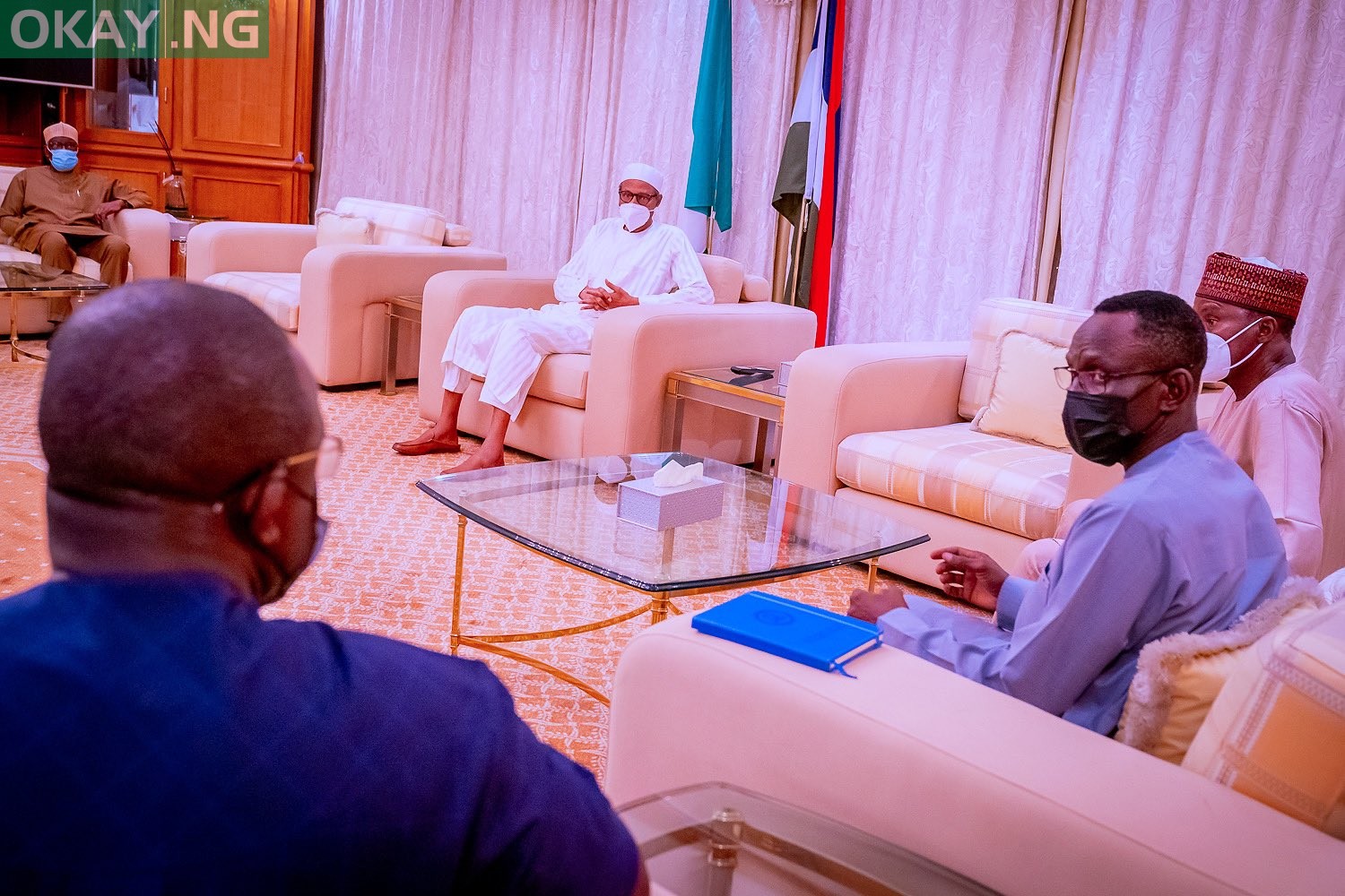President Muhammadu Buhari is currently meeting the nation’s security chiefs behind closed doors in Abuja. okay.ng gathered the meeting commenced at about 11.25am...