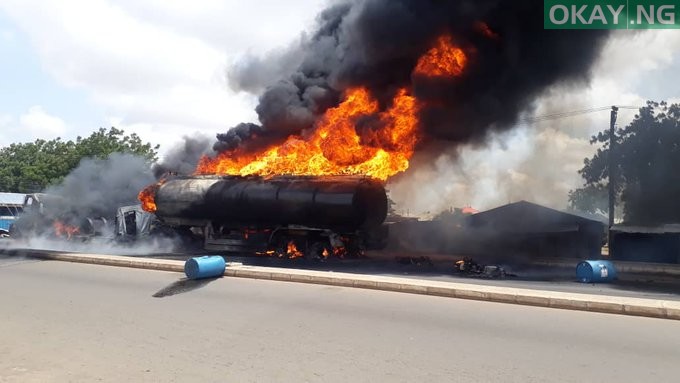 A tanker carrying petroleum products bursts into flames at Odukpani Local Government Area of Cross River state. Many people have been feared dead...