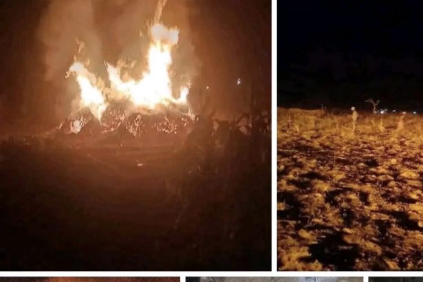 Residents of Jabo village on Thursday moved through scattered wreckage as they…