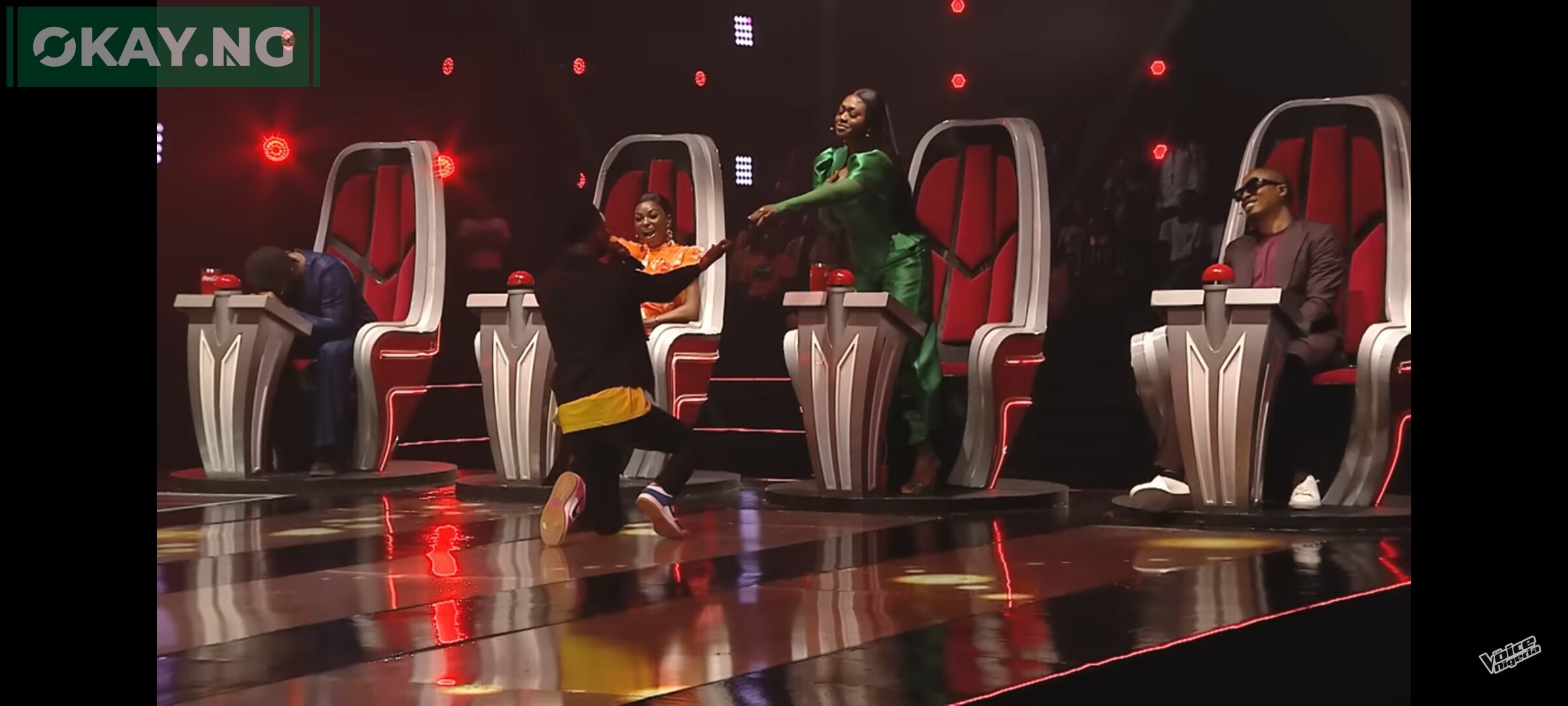 Vocal powerhouses Roselyn Asuquo and Timi Osigwe also delivered incredible renditions. Timi’s audacious rendition of “Respect” by Aretha Franklin was impressive to Coach Praiz but not enough to be instantaneously decided on. Wasting no time at all, Waje made an intriguing “steal” for the talent before she exited the stage. Roselyn Asuquo performed “I have Nothing” by Whitney Houston and proved her mettle with a strong start and bold finish to keep her in the competition.