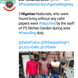 Three Nigerian citizens have been ousted from India for illegal stay, said the Delhi Police on Monday, January 25, 2021.