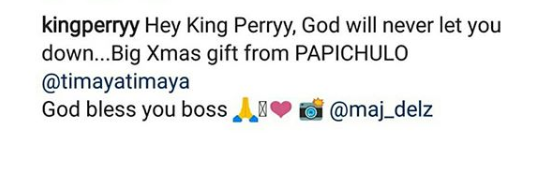 Hey King Perryy, God will never let you down…..Big Xmas gift from PAPICHULO, God bless you boss