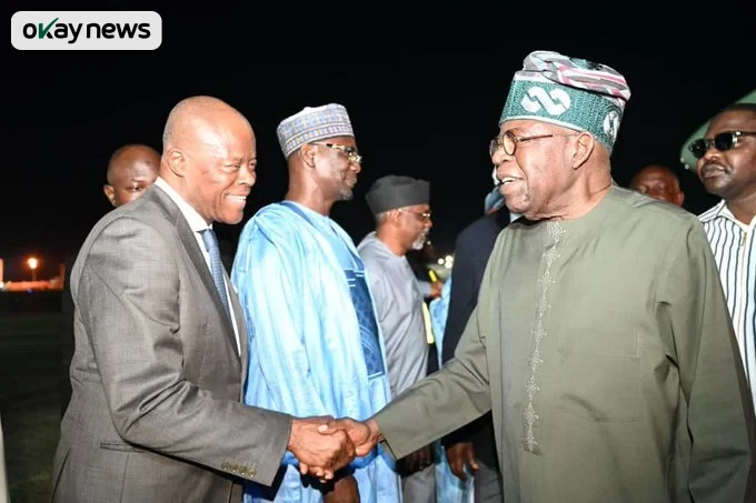 Okay News reports that the President’s arrival was confirmed in a brief notice issued on Saturday evening to State House correspondents by the Nigerian Presidency.