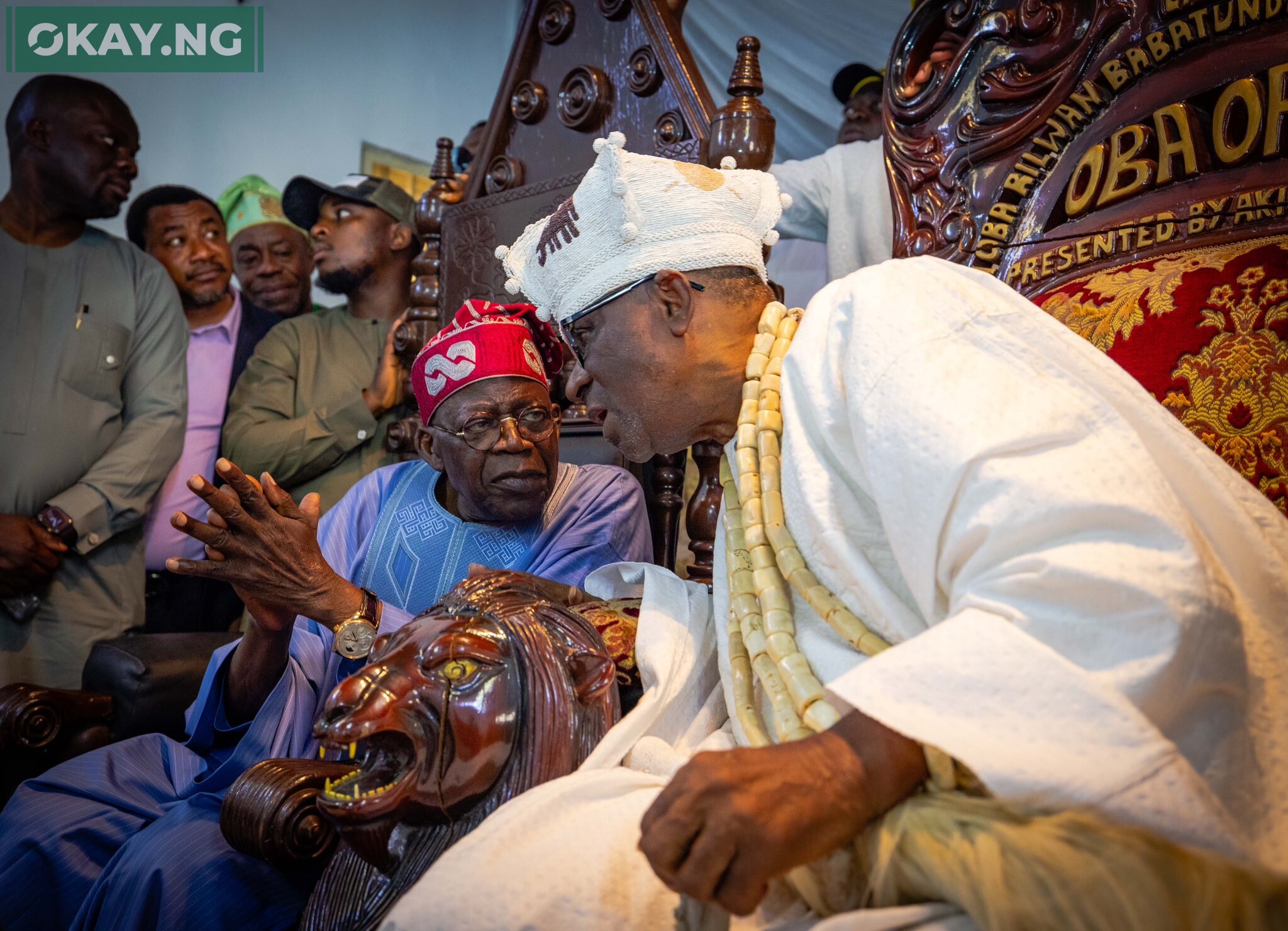 At the Oba’s palace, the former Lagos State governor promised not to disappoint Nigerians but keep to his plans. He vowed to work rigorously for the people and likened the journey to victory to a World Cup tournament.