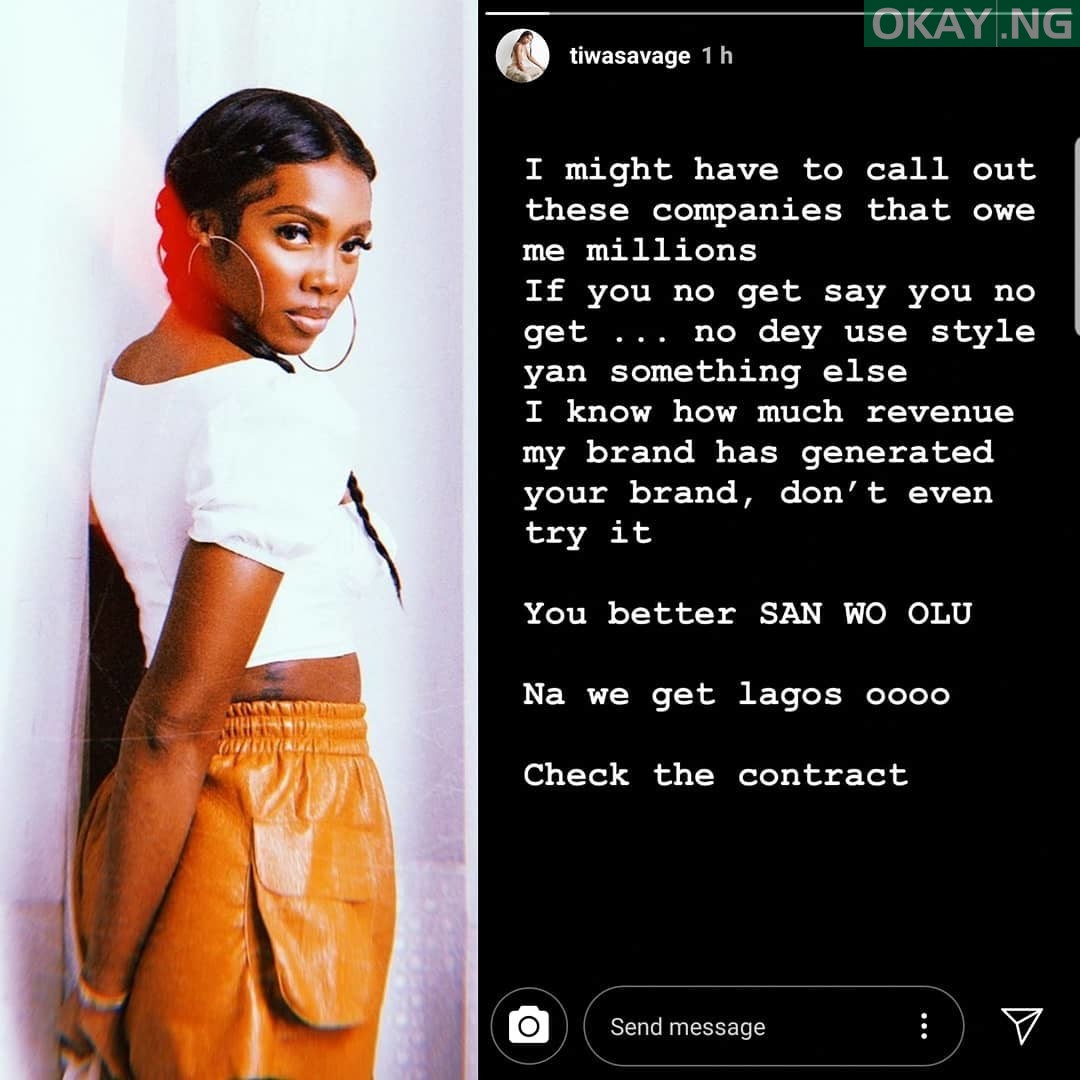 Tiwa Savage has threatened to expose some companies owing her millions.