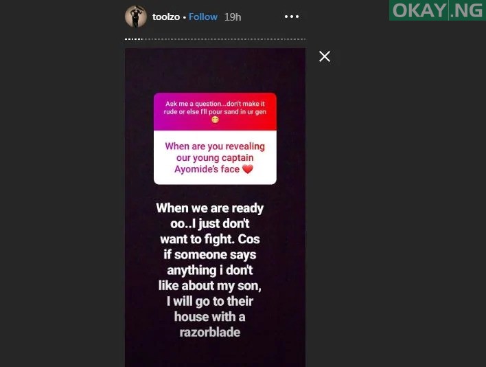 Furthermore, when asked she’s still hiding the face of her son, she replied:
