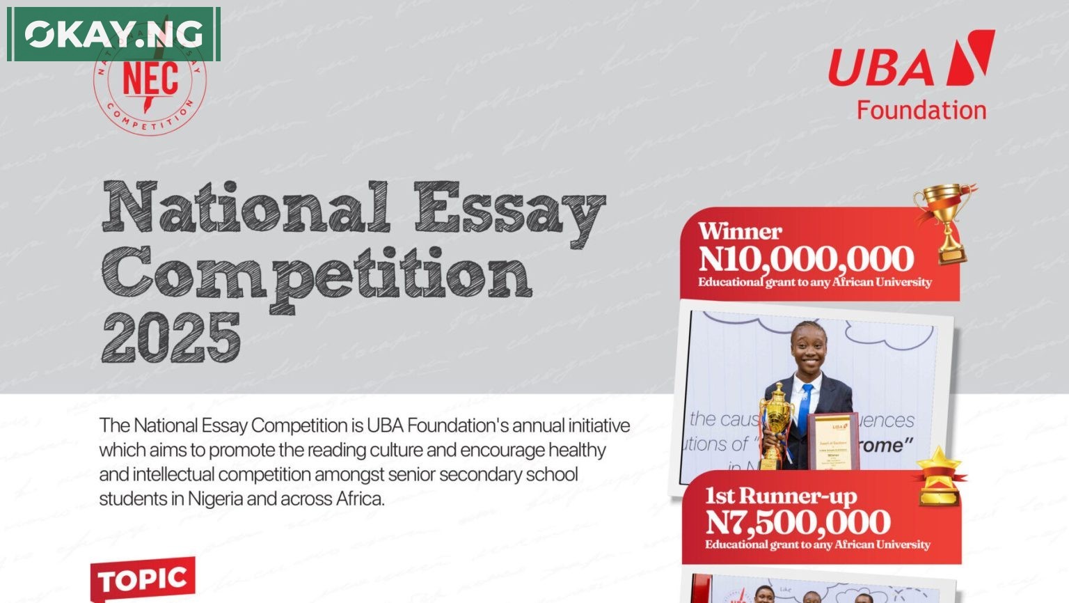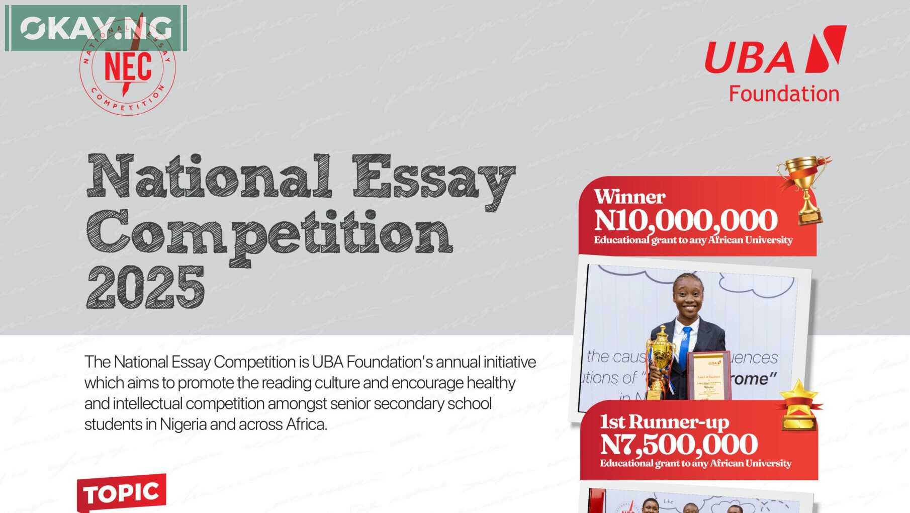 While the NEC began in Nigeria, UBA Foundation has since rolled out the competition in other African countries where UBA operates, widening access to its educational grants. Beyond the essay contest, the Foundation’s Read Africa initiative has also distributed hundreds of thousands of books across the continent to rekindle the reading culture among young Africans.
