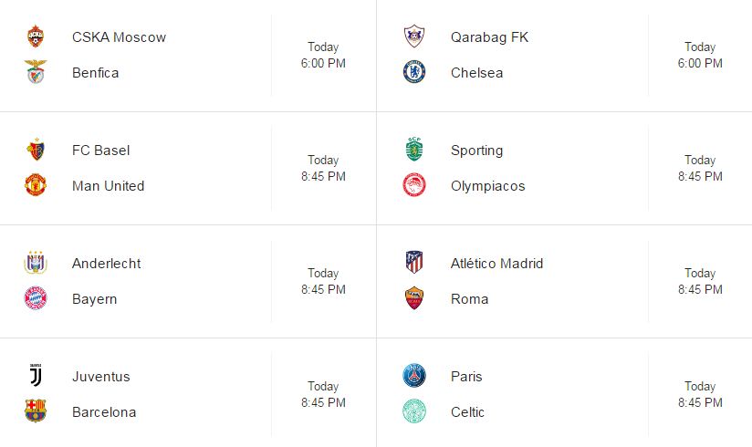 Today being 22/11/2017, we will be watching some big games like, Atletic Madrid vs Roma, Juventus vs Barcelona and others.