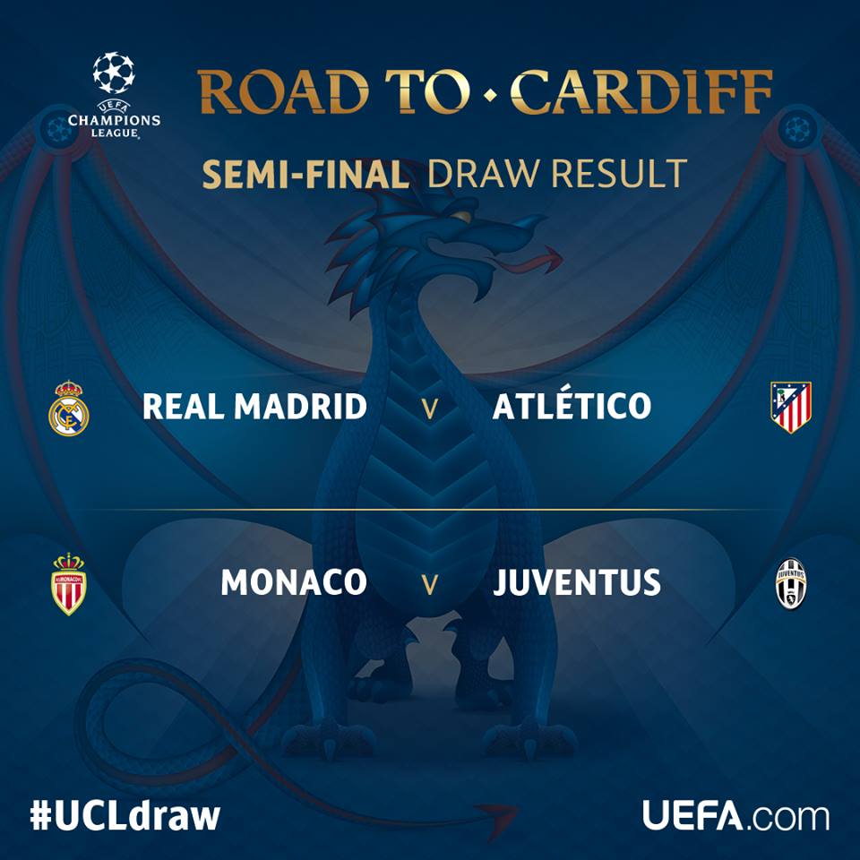 The semi-final first legs will take place on Tuesday 2 and Wednesday 3 May, with the returns the following week. The side drawn first in each tie will play the first leg at home.