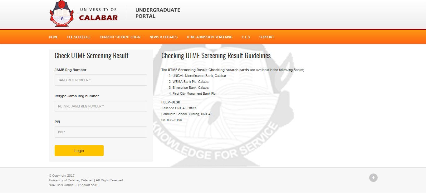 1. LOG ON TO: http://www.myunical.edu.ng/post-utme/check-post-utme.aspx