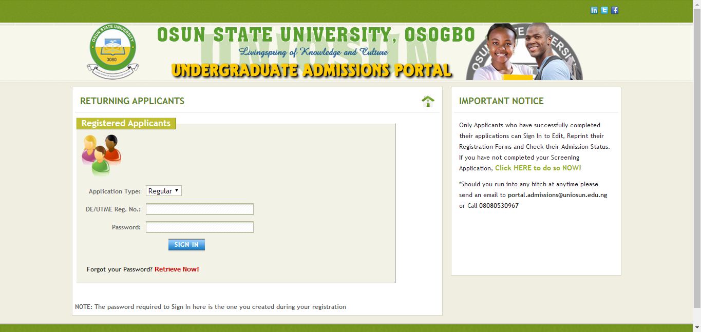 -Visit http://admissions.uniosun.edu.ng/returning/