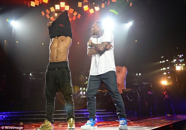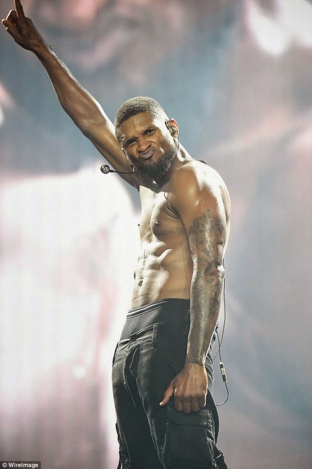 The bod on Usher sha, irresistible! Last Friday, dude showed off more than just his showmanship at Staples Center during the Los Angeles stop of his UR Experience Tour. The 36-year-old father-of-two, Good Kisser crooner entertained his sold-out crowd, got his female fans screaming and cheering when he chose to take off his black tank top and hit them with a little strip tease. Compared to Iyanya…. who rocked the stage strip tease better? lol. See more pics when you continue.