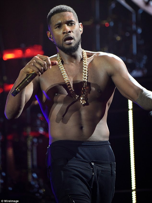 The bod on Usher sha, irresistible! Last Friday, dude showed off more than just his showmanship at Staples Center during the Los Angeles stop of his UR Experience Tour. The 36-year-old father-of-two, Good Kisser crooner entertained his sold-out crowd, got his female fans screaming and cheering when he chose to take off his black tank top and hit them with a little strip tease. Compared to Iyanya…. who rocked the stage strip tease better? lol. See more pics when you continue.