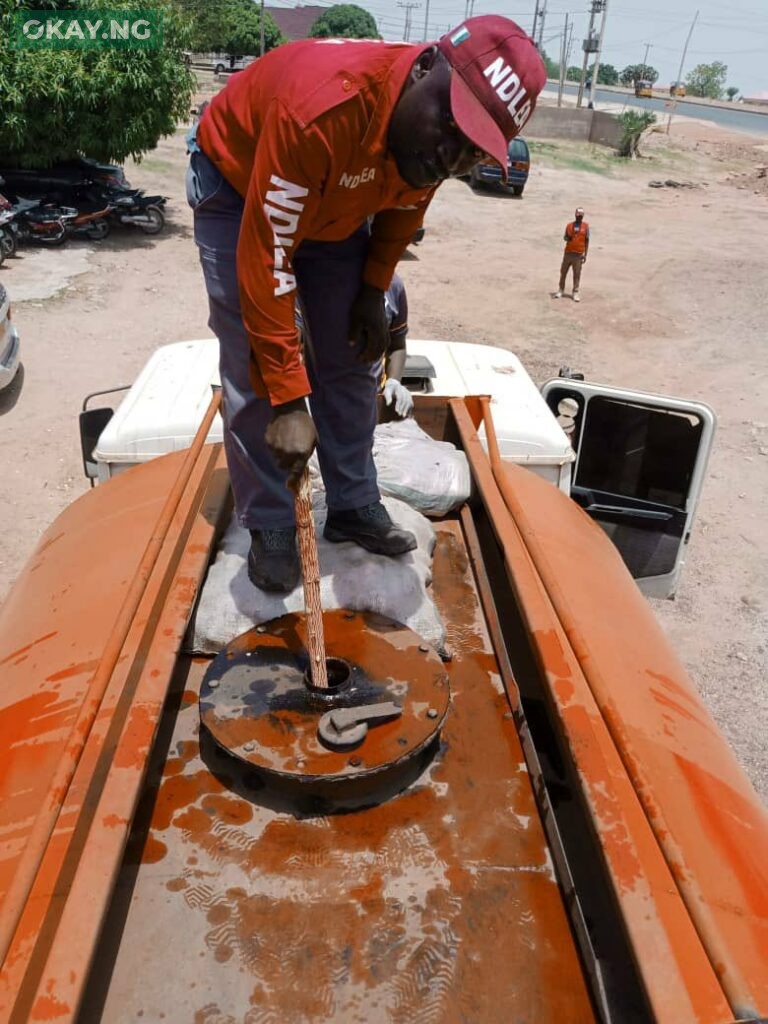 Operatives from the National Drug Law Enforcement Agency (NDLEA) have intercepted a fuel tanker that was ingeniously altered to hide and transport illegal drugs across Nigeria.
