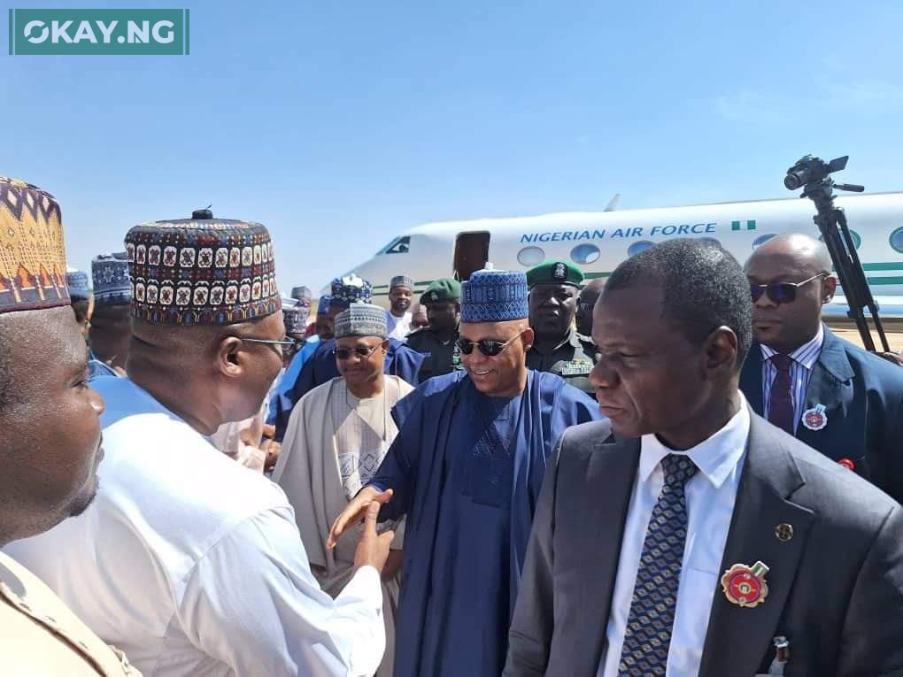 Welcomed at the Nigerian Air Force base, Mando, by Governor Uba Sani and high-ranking officials from the Kaduna State Government, the Vice President arrived alongside Speaker Abbas Tajuddeen, Minister of Defence Mohammed Badaru Abubakar, and APC National Chairman Dr. Abdullahi Umar Ganduje.