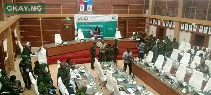 Okay.ng reports that the seats allocated to Mali, Guinea Bissau, Niger, and Burkina Faso military chiefs were vacant.