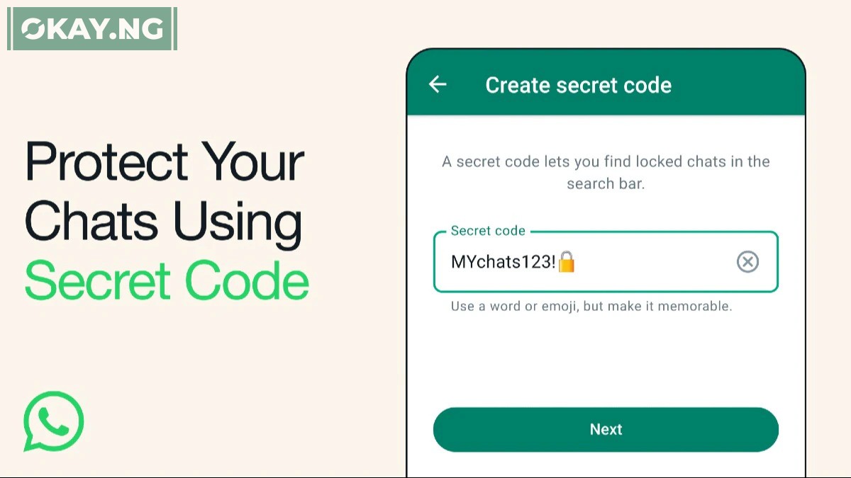 “Rolling out secret code to Chat Lock on WhatsApp so you can protect your chats with a unique password. Now you can set your locked chats to only appear when you type the secret code in the search bar, so no one can unintentionally discover your most private conversations.”