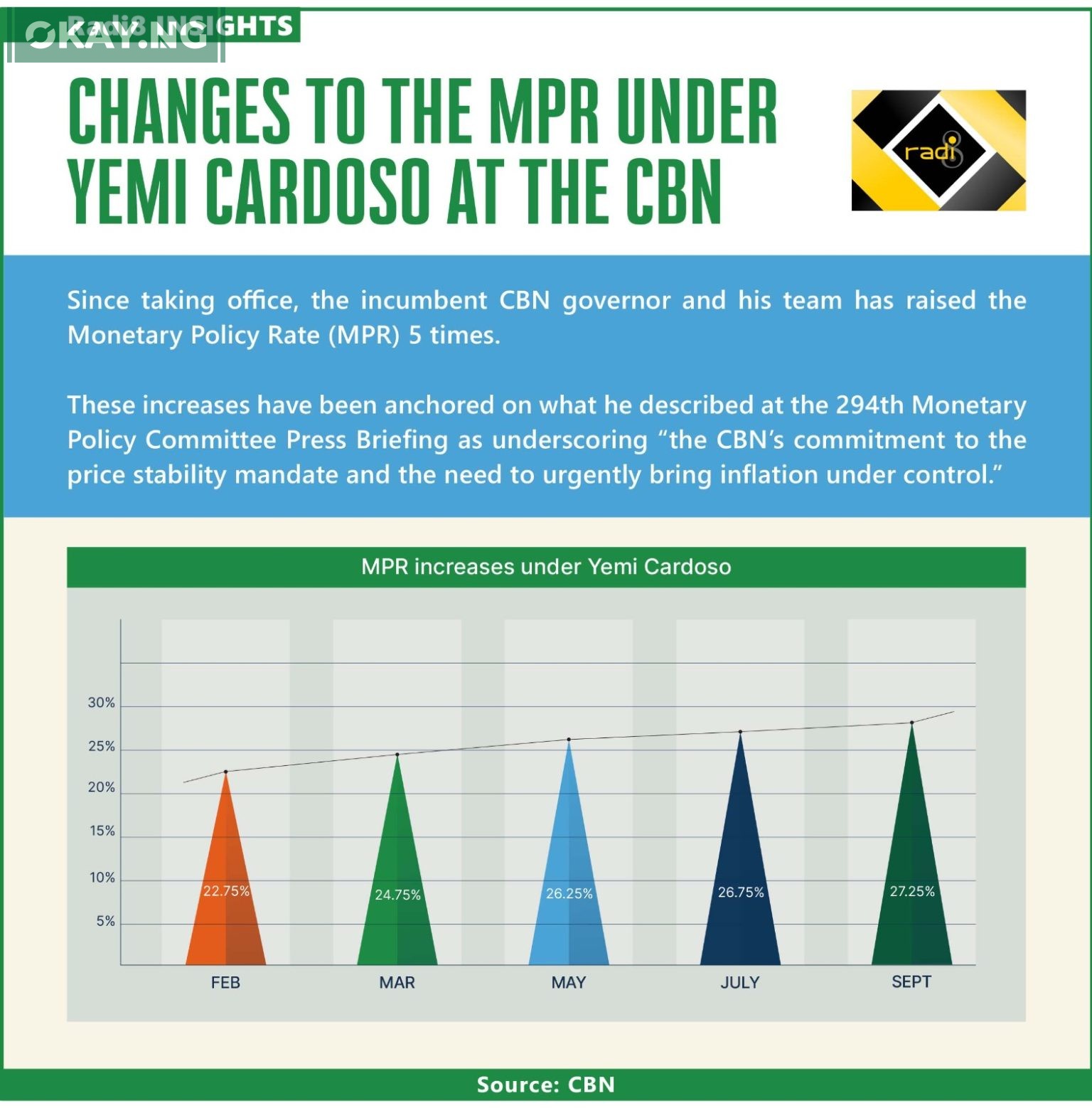 Since taking office, the incumbent CBN governor has raised the MPR 5 times.