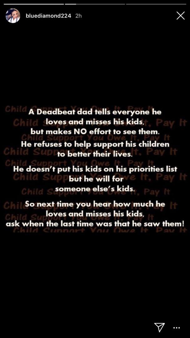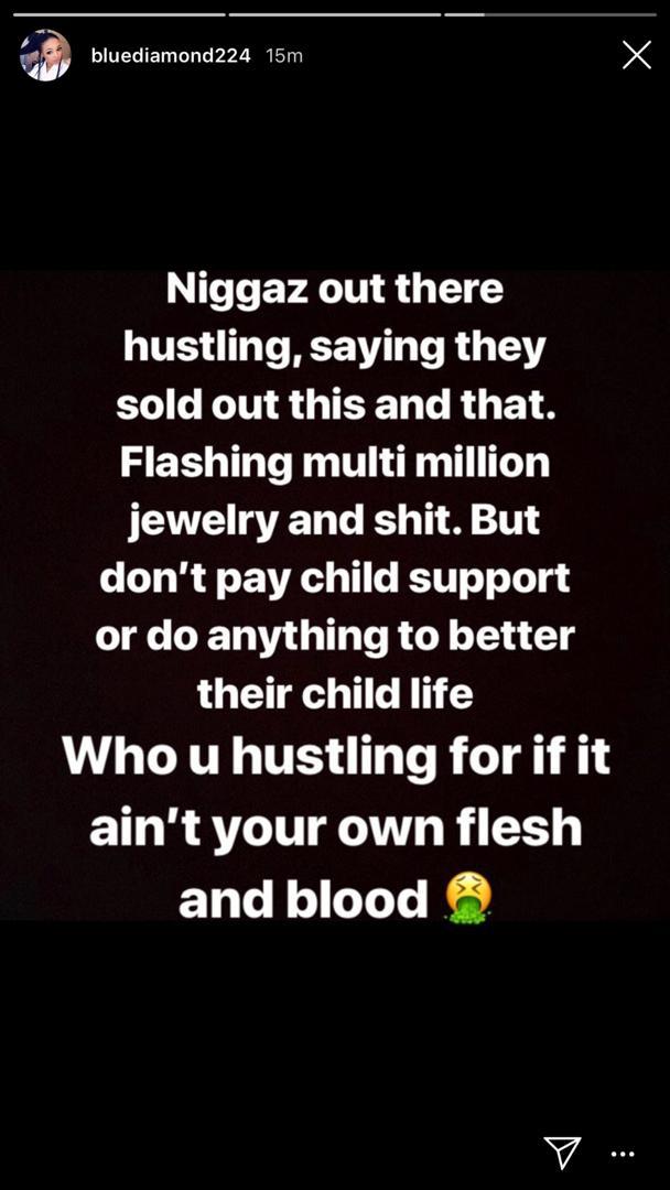 She went on to say he shows off his flashy lifestyle, multi-million jewelry on social media but doesn’t pay child support. “Who you hustling for if it ain’t your own flesh and blood?”, She said.