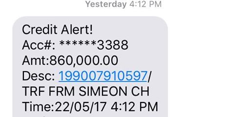 So yesterday someone mistakenly send 860k to my account.. When I saw that I know it was wrong transfer..so I waited for d owner to call, some minutes later he called and was shivering…I told him to relax that his money is in good hand ? .. he send an account number so I transferred 500k bcos that’s my daily limit and it cannot be exceeded, so this morning I send him d remaining balance..