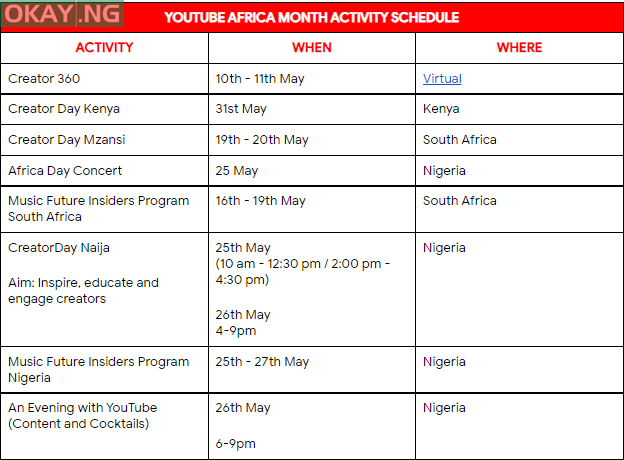 YouTube has announced a series of events to run throughout the month of May in celebration of Africa month.