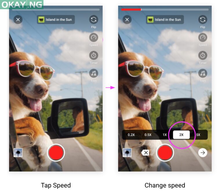 With YouTube Shorts, you have more freedom to experiment with the recording speed. Any of the five possible speeds can be used to produce slow-mo or sped-up effects. With the Speed button, you can slow down or speed up a video by 0.3 or 3 times.