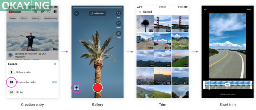 In certain instances, you might already have videos that you believe will be perfect for your YouTube Shorts video. No stress. Not only can you record your videos using the Shorts camera, but you can also upload videos from your gallery to create that next viral video. It’s as easy as clicking on the gallery button at the bottom left corner of the record screen, choosing a video, editing it to suit your requirements, adding commentary or music, and then uploading.