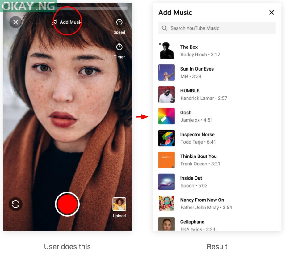 Without music in the background, your YouTube Shorts video can appear boring. You can add music to your Shorts by tapping the Add Music icon at the top and selecting one of the preset songs. That way you can then create lip sync and dancing videos using the song. You can also add audio from other YouTube videos into your YouTube Shorts video. To add music, click on the ‘Add Music’ tab and you’ll be taken to a library of music from famous artists that you can use. The page also shows which tracks are most often used in Shorts videos.